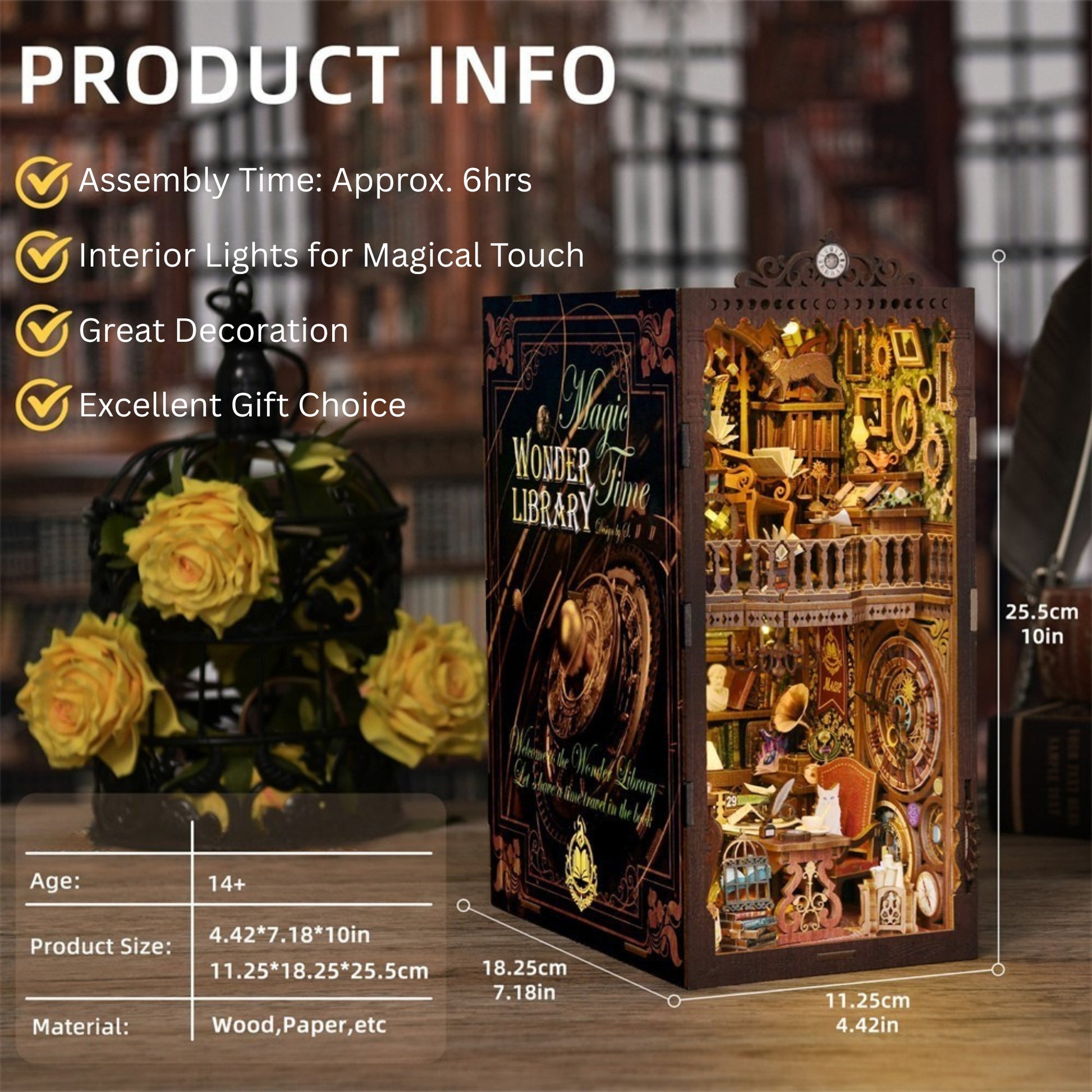 Book Nook Kit: The Wonder Library Book Club 3D Wooden Puzzle - A Magical DIY Miniature Experience
