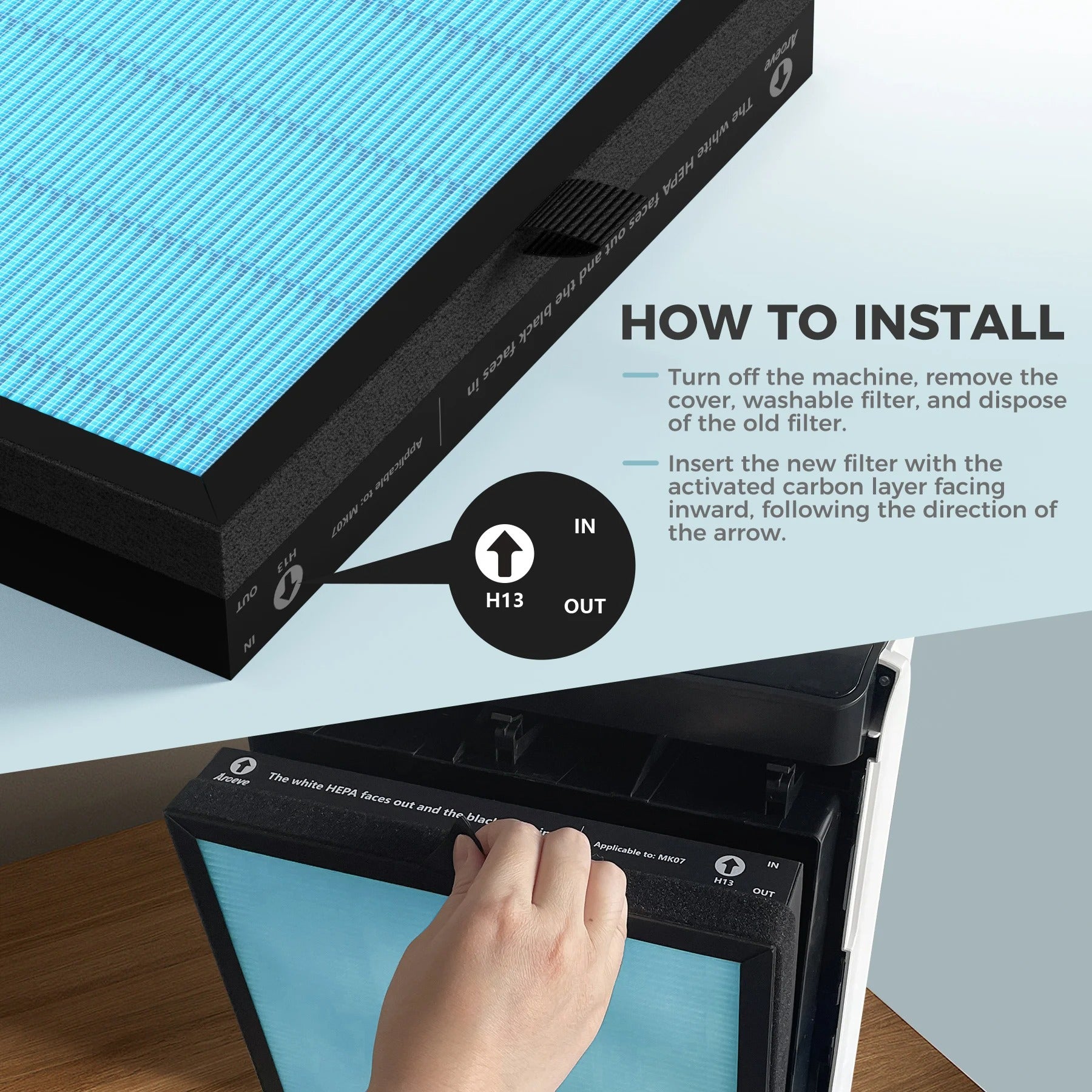 - Filter Choice: Choose either Anti-Allergy or Anti-Bacterial filter option.