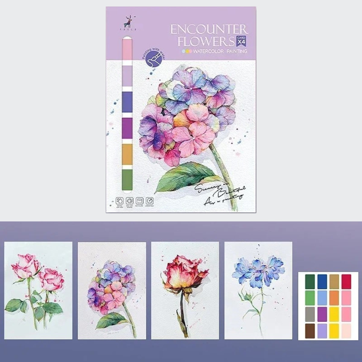 - Watercolor Painting Templates – Each book includes 4 unique, pre-drawn painting sheets ready to bring to life with watercolor pigments.
